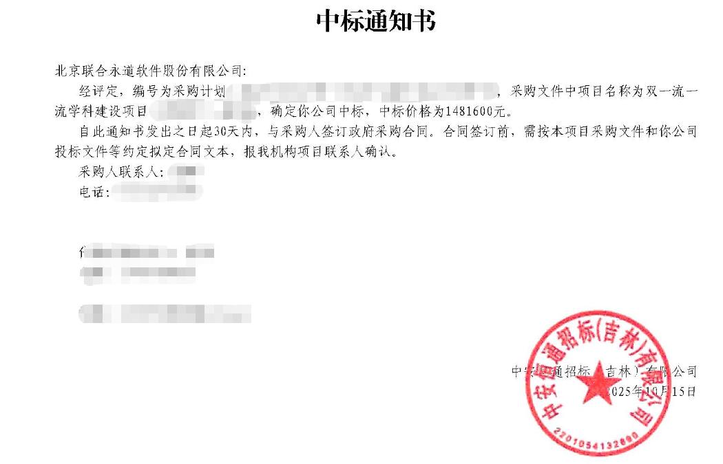 近日,联合永道在延边大学“双一流”一流学科建设项目的公开招标中脱颖而出,成功中标。这标志着联合永道在教育信息化建设领域的专业能力与创新实力再获认可,也为公司与高校携手推动“双一流”建设注入新动能。