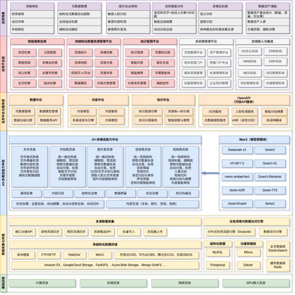 ●融合大语言模型、视觉模型、语音模型等多种 AI 能力,具备强大的多模态资源处理水平;