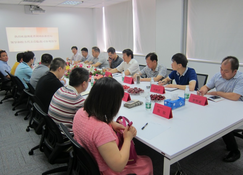 与此同时,在公司领导陪同下,张以标局长一行还前往天津渤海职业技术学院重点参观考察了由联合永道独立研发的天津首个也是目前国内规模最大、数据最全、功能最强、互动最好的天津渤海化工职业教育集团信息化资源平台,并深入北京国际职业教育学校全面了解了联合永道为其搭建的一整套完备的信息化系统及产品功能界面,从而对联合永道的业务和产品有了更加直观的了解。张以标局长也表示,希望今后与联合永道有更加紧密的联系与互动,一同为推进黄冈市职业院校信息化建设做出更大的贡献!